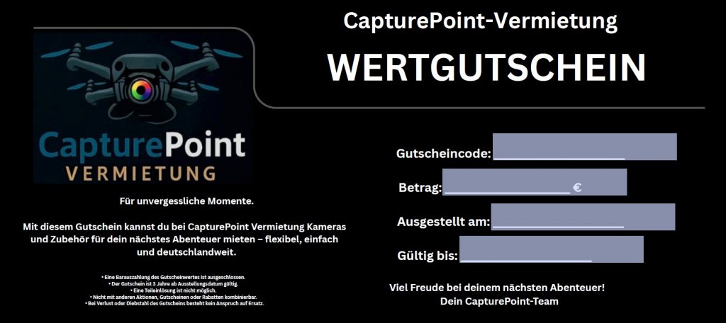 Perfekt für Kamera-Mieten, Drohnenflüge oder das nächste Outdoor-Erlebnis.